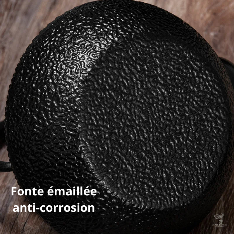 L’intérieur émaillé protège le métal et garde la pureté du thé.