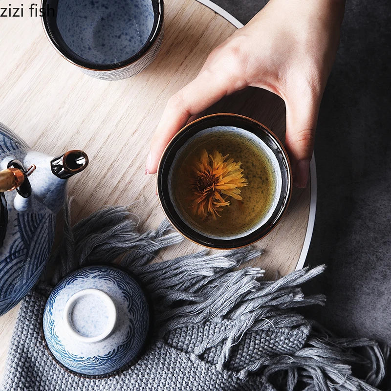 Laissez-vous emporter par la sérénité du Japon avec la théière Sakana, en céramique émaillée et ornée de motifs Seigaiha — ces vagues japonaises symboles d’harmonie et de continuité.