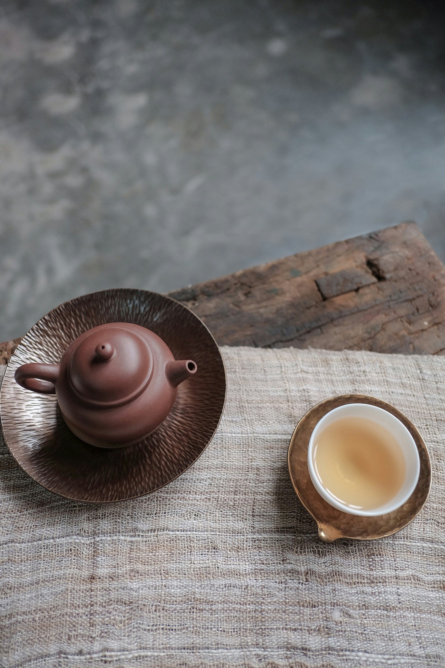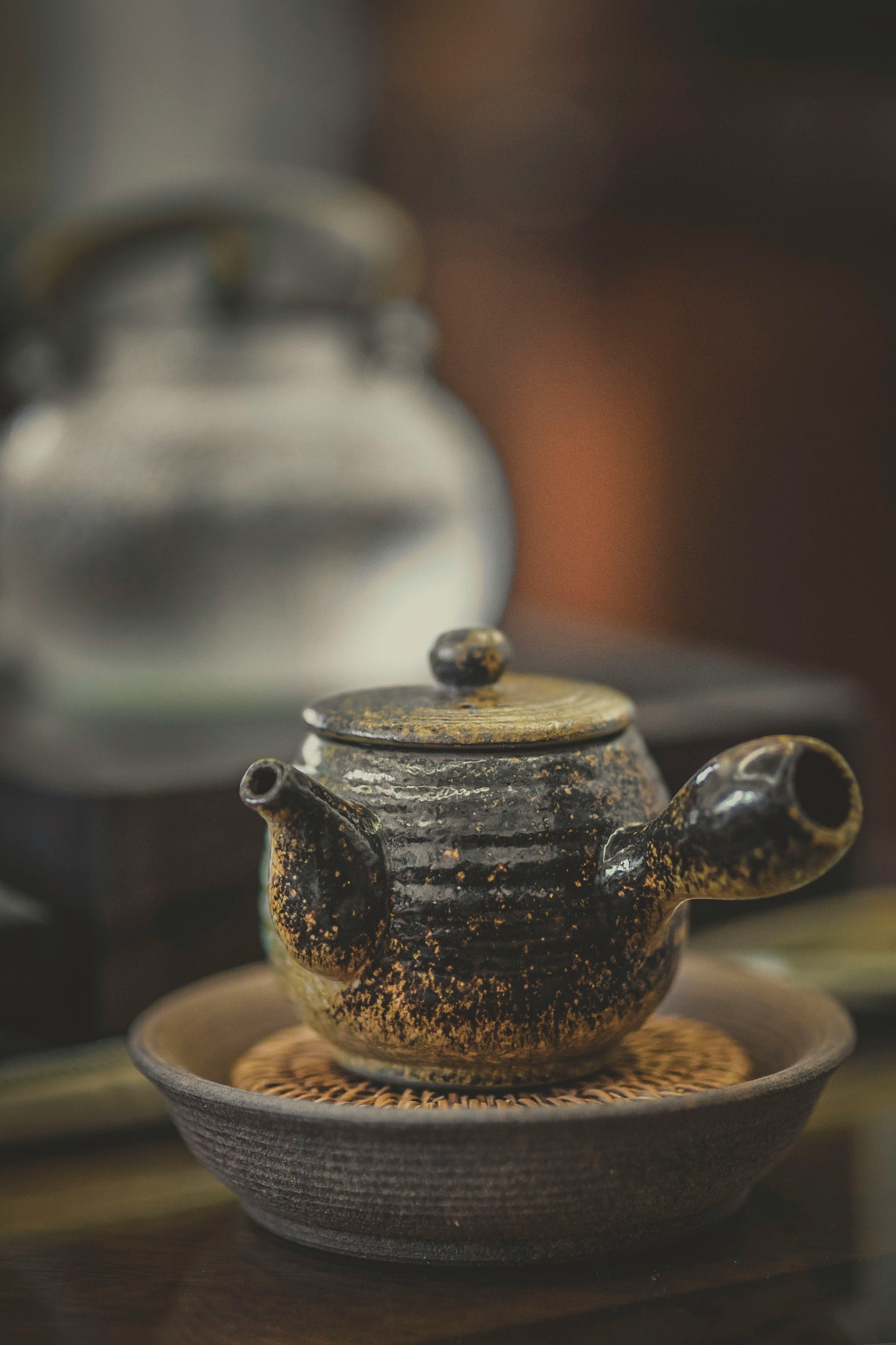 Façonnée à la main en terre cuite émaillée texturée, elle incarne une harmonie brute et poétique, propice à la sérénité du rituel du thé.